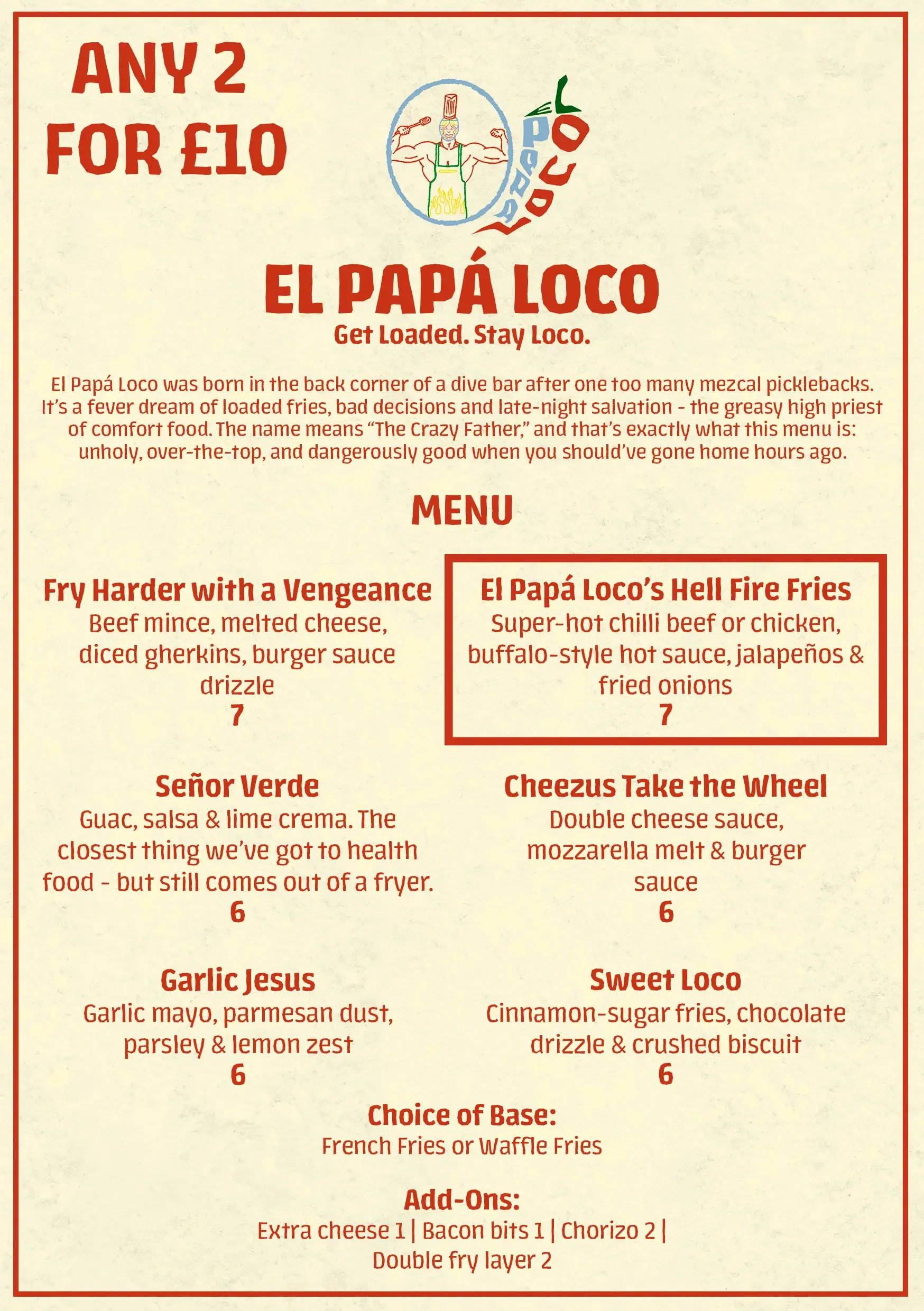 El Papá Loco is now serving at The Crown — fuel your night with loaded fries. Available every day during Happy Hour 4—8PM.